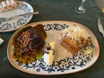 A great restaurant, helped us out at lunch, although we didn't calculate our strength, the assortment is appetizing and large portions, salad with tomatoes, draniki, of course, grilled cheese, small pies, probably more profiteroles, everything is delicious. We were lucky to be located on the veranda, the street is quiet, very cozy and comfortable. We didn't get to dinner without reservations..... We hoped for luck, but it's better to book in the evening so that we can be sure.