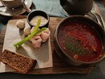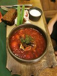 Delicious tinctures, excellent borscht. I liked everything, but the price tag is high - the place is popular and touristic. There is always almost a full landing, it is better to book a place in advance, especially if you have a lot of food.