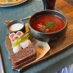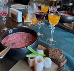 I went here two days in a row. I liked everything! Some things are good, some are great, and some are downright gorgeous! Okay, borscht is a little salty for me, but I don't eat salt at home at all, only in ready-made dishes in cans, so I feel it more sharply. All right, lusts, they're bruschettas. As an addition to the soup, it's great, as a separate dish it's a little dry. Lots of bread. Great - ear! She went very far. The fish has a shape and texture in addition, and not a collapsed something, the broth is light. It's been a pleasure. They also give small sandwiches with butter and caviar to the ear) It's great - tinctures and draniki with steak and foie gras! I've tried almost all the tinctures in two days - one is better than the other! Krambambula is generally a song! )) Draniki is probably a local crown. On the second day, a married couple was nearby, so they just came for them. I will definitely go here on my next visit to Minsk to try the rest) And about the service - it's exactly what it should be in such establishments. I recommend booking a table in advance, otherwise even on Monday evening I was sitting at the bar.