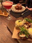 I didn't like it: This is not traditional Belarusian cuisine, there are only draniki, dumplings, non-traditional wizards and that's it! I don't understand why they write about traditional dishes. Service: we expect cool service, but no - the waiter in tattoos could not remember which dishes to sell to whom, he quickly brought tinctures to some guests, although they came later, we had to wait, which causes dissatisfaction. Someone had a full set of instruments on the stele, and someone did not. So it does not match the declared level and the price tag for the service. On the plus side: a couple of delicious unusual cocktails, very tasty dumplings with venison.