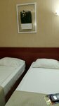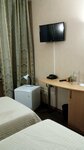 Плюсы- чисто, холодильник, телевизор, ванна и туалет в номере, завтраки в гостинице- шведский стол, лифт, всё хорошо. Персонал вежливый, терпеливый, отзывчивый. Из минусов (говорю только про наш номер, кому-то повезло больше) - отсутствие кондиционера, в номере 2 кровати, но одна прикроватная тумбочка, один стул. Впечатление,что номер на одного человека, а просто добавили ещё одну кроватку.