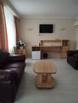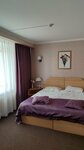 Хороший 2х звездочный отель ,взяли хороший двухкомнатный номер с сыном, в одной комнате диван ( хороший новый плотный) по просьбе его за стелили. В другой комнате двуспальная большая кровать, ванна оборудована. Нет одноразовых зубных щеток и зубной пасты, остальное все в наличие. Завтраки включены , бизнес ланч кушал сын 420 рублей ему понравилось ( пюре картофельное , филе курицы, компот ягодный, салат овощной, хлеб 2 кусочка) в итоге остались довольны !