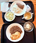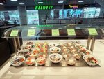 Мы заметили, что в эту столовую пошли обедать проводники нашего поезда, которые приехали с нами из столицы. Логично же, что в этом городе они не впервые и вряд ли будут есть где-то, где не качественно готовят. Поэтому мы последовали их примеру. Заведение это сетевое, и на весь город приходится еще три такие одноименные локации. Но данная, пожалуй, самая популярная; объясняется это ее местонахождением, ввиду относительной близости к вокзалу. Персонал спокойный, но уставший, никто не здоровается. Подносы возле линии раздачи стоят какие-то замусоленные, чувствуется, что они уже пожившие. Но в этом нагромождении нам все равно удалось урвать парочку более-менее чистых. На самой раздаче чисто: холодные блюда под пленкой на охлаждаемых прилавках, горячие - за стеклом на мармитах. Есть станция самообслуживания с напитками, заводскими десертами и микроволновками. Больших очередей нет, обслуживают без задержек, цены низкие. Разнообразие выбора в меню подняло настроение. Скажем так, даже если вы питаетесь по какому-то конкретному протоколу, то здесь с большой долей вероятности можно будет найти то, что вам подойдет - проверено на себе! Кухня преимущественно домашняя, поэтому ассортимент понятный и знакомый. Четыре разновидности первых блюд, различные гарниры, большущий выбор салатов, несколько категорий мясных и рыбных блюд, напитки и десерты. Что же касается блинов, то их здесь пекут на открытой кухне со всевозможными начинками. Этот помещение соседствует с баром, в котором, помимо пива, вина и шампанского, предлагают крепкое спиртное. Сервисом вас здесь не избалуют, а накормить по-человечески накормят, и, кстати, денег за это много не попросят: полноценный обед на двоих обошелся, грубо говоря, в 600₽.