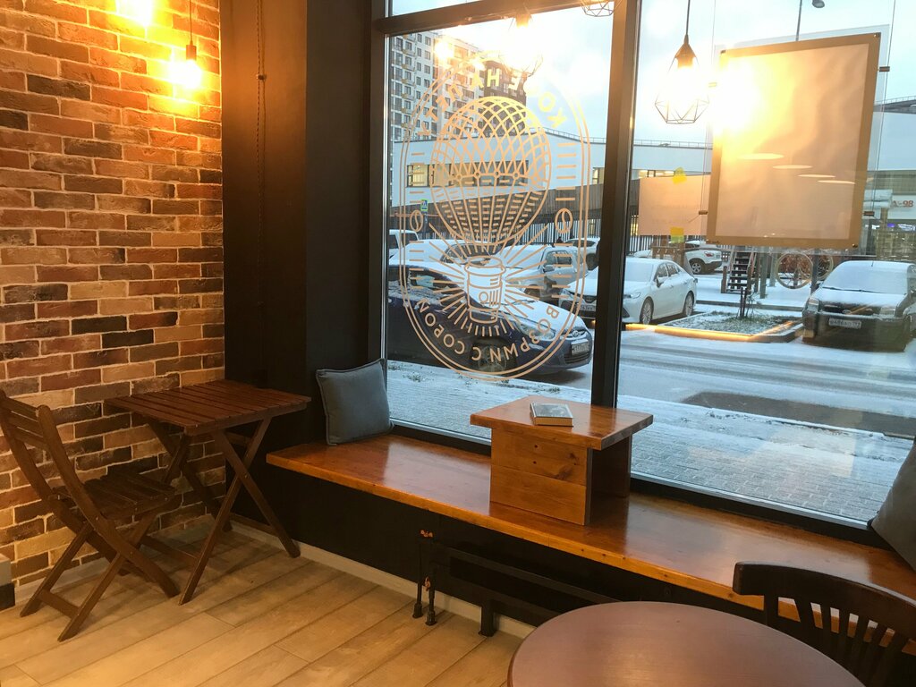 Место очень даже уютное, шла вечером домой и решила забежать за кофе. Кофейня маленькая и по домашнему уютная. А место на подоконнике фишка очень даже прикольная. Очень вкусный тортик, посоветовал продавец, который кстати был очень вежливый и приветливый 😊