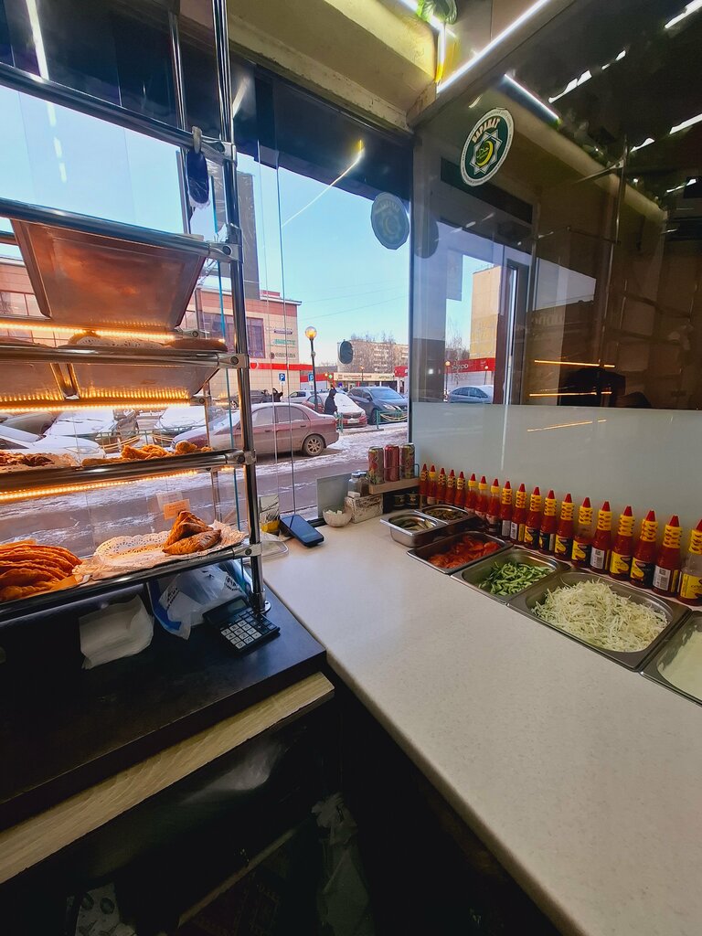 Очень вкусная шаурма. Берем не первый раз, сочная, много мяса. Пирожки с картошкой тоже вкусняцкие. Много всего вкусного, надо будет все попробовать)