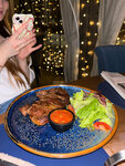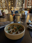 Хороший ресторан, интерьер, подача блюд, обслуживание - всё в целом понравилось, но по еде есть недочёты. Заказывал (ноябрь 2025): - Креветки жареные. - Острый суп с креветками и кальмаром на кокосовом молоке (типа Том Ям. Никакой. Не насыщенный, не острый. Креветки и кальмары в супе есть, хорошие, только их и выловил). - Стейк Нью-Йорк, прожарка medium (мясо хорошее, приготовлено тоже как надо, может слегка передержали, но принесли еле-еле тёплый 🤷‍♂️, даже странно. От этого вкус сразу потерялся). - Десерт: чизкейк манго-маракуйя (вкусный). Заказывал (декабрь 2024): - Тартар из говяжьей вырезки с каперсами и вешенками (просто находка! Очень интересное сочетание вкусов!) - Борщ по-купечески (очень красивая подача, но сам борщ пустоват). - Каре ягнёнка со сливой (сочетание со сливой супер, а вот мясо жестковато). - Десерты клубника-базилик и Павлова (вкусные).