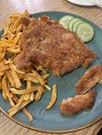 Место немного странное, но однозначным плюсом является кухня! Заказал гренки -5 восторг, сковородку жаренку, фирменный салат все вкусно и профессионально приготовлено, подача для кафе отличная, думаю годится на каждый день, ждать блюдо из под ножа 10-20 мин салаты и горячее от 30 мин