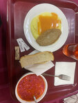 Зал довольно большой, персонал милый, немного смущала музыка короткая очень громко пела на весь зал дак и ещё это были какие то старые динамики которые все шуршали, пробывала борщ и была удивлена потому что в первые ела борщ с колбасой так же ела котлету с пюре, котлета мне понравилось а вот пюре не очень вся еда очень пресная( видно что на всем экономия) морс из клубники это вообще розовая сладкая вода