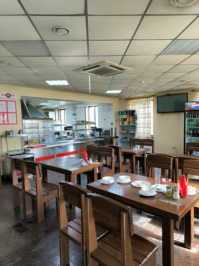 Хорошее кафе, большое меню, всегда всё свежее, и вкусное, очень приветливый персонал, в кафе всегда чисто и комфортно! Рекомендую! За зданием кафе есть большая парковка, для легковых автомобилей и грузовиков, также в здании есть гостиница!