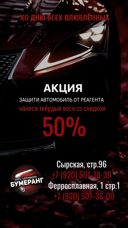 Мне нужно было срочно помыть салон в дождливую погоду, обратилась в Бумеранг, зная, что там всегда можно получить качественную услугу 🔥и правда мои ожидания оправдались, машина внутри как новая, все отмыто, полиролью все натерто, полироль с приятным запахом👌 большое спасибо, не зря у Вас считается можно помыть качественно Спасибо🤝