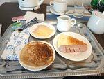 Ресепшен шикарный - канделябры, лепнина, подсветочка, зеркала в золеченых рамах, завитушки на лестнице. Номер на третьем, мансардном, этаже оказался просторным. Теплый пол приятно грел ноги. Но цена 6500 за ночь на двоих показалась завышенной, и конечно за эту цену белые полотенца оказались недостаточно белыми, зубных принадлежностей не оказалось, не было даже стаканчика для щеток, хотя держатели для него торчали из стены. Но если не придираться к мелочам, отель очень приличный. Мебель в хорошем состоянии, натуральное дерево либо ламинированное дсп. Одеяло на двуспальную кровать положили полуторное 😅 но качество белья нормальное. Матрас правда слишком мягкий для нас. Завтрак здесь подают в постель, то есть в номер. Выбрать можно было одно из трех: два вида каши и омлет. Состав завтрака приятно удивил. Кроме омлета было еще много чего. Сосиска довольно вкусная, без бумаги, всё горячее, даже тосты (как они успели донести это всё горячим на третий этаж?) Сливки не в коробке, а в ☝️сливочнике. Приборы - в тканевом футлярчике с кружевами. В чайнике неожиданно оказался кофе.