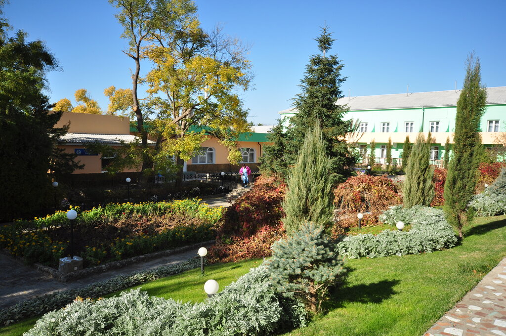 Отдыхали с 24 декабря 2025 года по 13 января 2025 года, то есть попали на все праздники. Сразу скажу , что всё очень понравилось! Замечательная уютная и ухоженная территория. Интересные решения с качелями, скамейками и даже с урнами! Новогодняя ночь была весёлой. Во первых, был накрыт замечательный стол. И оливье и селедка под шубой и еще 2 салата. Плюс к этому бутерброды с красной икрой и еще что-то 😋. На столе ждала бутылка шампанского от санатория. Фрукты и десерты тоже присутствовали. Потом еще и горячее принесли. Всё очень вкусно приготовлено. 👍 спасибо поварам и персоналу столовой. Потом всех пригласили на дискотеку. В половина 12го ночи с дискотеки ушли все и вновь встретились в половина первого возле ёлочки. Там нас уже ждал Дед Мороз. В основном все отдыхающие люди возрастные, но - веселились как дети. И хороводы водили и загадки отгадывали. Пишу подрлбно, чтобы кому выпадает на новый год путёвка - не отказывайтесь. Надо отметить, что программа вечернего отдыха была хорошо построена. Спасибо! Два раза за 21 день были концерты артистов филармонии, 3 раза в неделю в кинозале показывают художественные фильмы, караоке, дискотеки. Всё ненавязчиво и интересно 👍. Раз в неделю в обед проводили розыгрыши. Первый раз призом был каравай, во второй раз на Рождество разыгрывали блюдо с пирожками и кувшин компота. Оба раза выиграл наш стол 😊. До пляжа около 500 метров. Ухоженная набережная. До 14 часов были очень плотно заняты процедурами, а после обеда ходили гулять по берегу моря. Много чаек и лебедей на берегу. В самих корпусах чисто и уютно. Персонал доброжелательный. Лечебная база - замечательная. Сразу видно, что у санатория хорошая хозяйка. Большое спасибо начальнику санатория за отлично налаженную работу в организации! В общем мы с мужем уехали довольные и отдохнувшие.