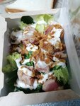 Заказ делала через сбермаркет, выбирала заведение по рейтингу. В заказе бургер и салат с тунцом. Бургер вкусный, особенно с голодухи. Салат - это ужас, нечто неаппетитное и малосъедобное за 440 рублей! Тунца как будто рвали зубами или руками, куски как обгрызанные, разных размеров. Неужели нельзя аккуратно нарезать рыбу и помидоры? Я не смогла ЭТО съесть. Ладно внешний вид, но еще и невкусно, есть сомнения в качестве рыбы вообще. В сбермаркете только извинились. Впечатление о заведении испорчено, как и аппетит.