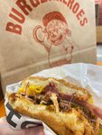 Очень вкусный бургер! Я не особо люблю фарш, поэтому меня поразила говядина в нем, очень нежная и сочная. Вроде как брала бургер «Чит Мил» Перчики халапеньо отличные, их достаточно много, было остренько, но на выходе все было хорошо, без дискомфорта))) Мак энд чиз отличное дополнение к этому бургеру, так же обнаружила фасоль и много всего другого, уже не вспомню. Удивительно, как все это может так прекрасно сочетаться? Кстати, не отказали принять заказ за 5 мин до закрытия, спасибо большое. Цена адекватная за такой шикарный бургер. Советую есть в перчатках, он очень сочный