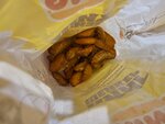 Картошка превращенная в уголь, луковые кольца того же состояния. Бургер выдали холодный, пирожок не готов, в воппере котлета пережарена, у вас настолько много времени свободного без заказов, что все забывается и не убирается с огня вовремя?? Просьба руководства поработать над Кухней, выдача ошиблась в комплектации заказа, это худшая точка в городе.