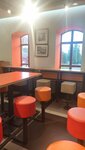Очень удобное местоположение, в парке, небольшой, уютный бургер, как и везде бывают очереди, без них ни куда) вкусно, быстро) обычно захожу за горячим кофе.