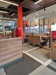 Удобное расположение. Чисто. Есть кинг авто. Большое преимущество большая парковка, на которой всегда можно найти место. Обычно немного народу. Быстрое обслуживание.
