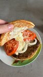 Приготовленный на огне бифштекс из 100% говядины, сочный помидор, свежий нарезанный салат, густой майонез, хрустящий огурчик и свежий лук на мягкой булочке, посыпанной кунжутом