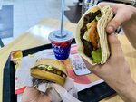 Бургер очень вкусный: сочная котлета, свежие овощи и мягкая булочка. Порция большая, обслуживание быстрое — рекомендую! 🍔