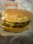 По ошибке заказали в киоске острый бургер, но это ладно. В чеке значится «Острый воппер сырный дуэт». Открыли коробку только дома, в итоге там оказался обычный воппер без ломтиков сыра. Спасибо, переплатили за воздух. Бот поддержки в приложении максимально бесполезный: он не знает об этом ресторане, потому оставить обращение там нереально 👍 Прикладываю фото. Видите там сырные ломтики над котлеткой? Вот и я увидела их только в названии в чеке и в описании на сайте