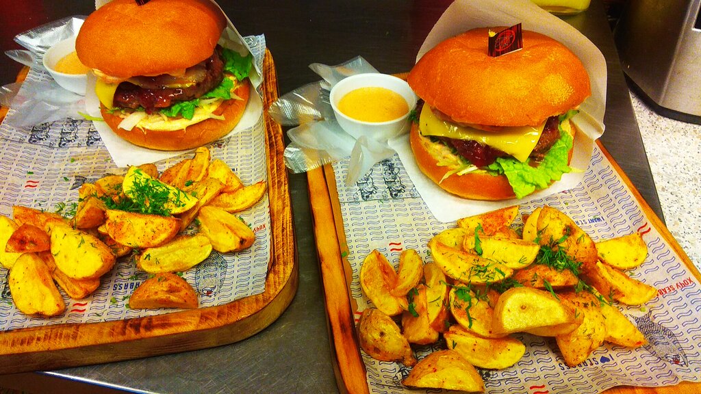 Это кафе — настоящий рай для гурманов! Ассортимент бургеров впечатляет разнообразием: есть как классические, так и авторские рецепты. Атмосфера приятная, интерьер уютный. Рекомендую всем, кто ценит хорошую еду и хорошее настроение!
