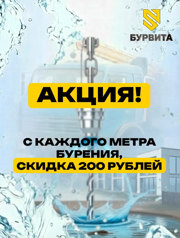 Чистая вода круглый год. Приедем бурить уже завтра! Указана стартовая стоимость бурения. Точная цена зависит от глубины, геологии участка и выбранного оборудования. После осмотра места и уточнения параметров мы сделаем детальный расчет.