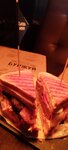 Отличные бургеры! Зашел с девушкой перекусить. Предложили на выбор стэйки, бургеры и сэндвичи. Заглянув в меню, цена по началу испугала, но потом я увидел размер этого бургера (принесли за соседний столик) и решил попробовать. Официантка порекомендавала сендвич "беконатор". Понадеявшись на ее опыт и знание ассортимента, я согласился. Моя девушка заказала себе тоже сендвич, но с семгой. Заказ ждали минут 15, помимо нас в заведении сидела ещё парочка. Также, официантка нам предложила разливное пиво, сказав, что у них богатый выбор крафтовых сортов, но я остановился на чае, а моя девушка заказала себе какао. Когда нам принесли наш заказ, я мягко говоря офигел. Такой огромный сэндвич я не видел ни разу, хотя регулярно посещаю заведения подобного плана. Приятно, что вместе с сендвчем дали целую гору картошки фри. Причем реально это была гора, торчащая из середины сендвича. Так же в комплектацию к сендвичу шли перчатки. Касательно вкуса - положа руку на сердце - это самый вкусный сэндвич из тех, что я ел. Девушка тоже в восторге от своего сэндвича с семгой. Какао это отдельная история. Очень интересная подача и замечательный вкус. На фото именно оно. Друзья, сэндвичи здесь реально огромные. Итог: нам все безумно понравилось. В заведении на двоих мы потратили около 800 рублей.