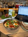 Я вообще не любитель сладкого, но этот круассан с соленной карамелью был нереально вкусным ! Я такого нежного крема не ела еще никогда, как домашний, очень вкусно! Шакшука тоже на высоте, порция хорошая !