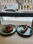 Очень вкусный завтрак Большой с форелью. Отличные свежие и вкусные десерты, жене особенно понравилось пироженное Баваруа. Рикотта Облепиха тоже хороша. Из минусов показалась завышенной цена кофе.