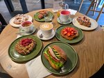 Приходили позавтракать,приятно то,что сделали кашу на альтернативном молоке по моей просьбе.была вкусная булочка с яичницей и слабо соленой семгой.вкусный чай,много десертов ,выпечки и все это красиво)