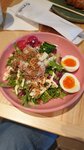 очень вкусная свежая выпечка по демократичным ценам! понравились булочки с тунцом и лососем и сладкий кренделек. очень вкусная спэшл матча с клубникой. произошло какое-то недопонимание, когда заказывала матчу, в итоге пришлось 4 раза подходить и уточнять что же я заказала) видимо на кассе была девушка-стажёр, однако мне все нормально исправили и оно стоило того! очень советую голубую матчу как на фото