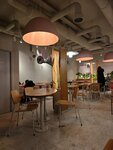 Уютно, красиво, много посадочных мест, большие окна. Очень заботливый и приятный персонал. Еда вкусная. Звёздочку снимаю только за то, что вытяжка часто плохо работает и тогда сильно пахнет чем-то типа жареного бекона. Также неполное меню, нет многих горячих блюд, это тоже для меня минус, потому что ассортимент ограничен получается) Апдейт: также странная вентиляция, либо душно, либо очень холодно и заметно дует, так что люди вокруг сидят в верхней одежде, и руки мёрзнут.