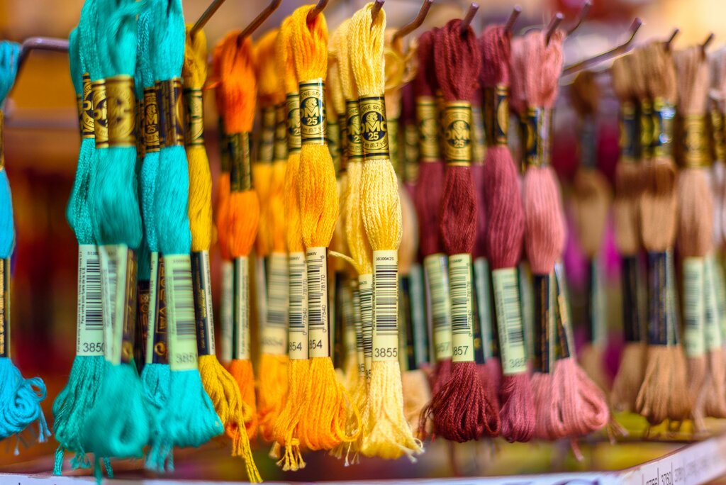 Handicraft stores:tapes, fabrics, ornamentation, beads, yarn, thread, lace, packing, tools, polymer clay, dyes, findings