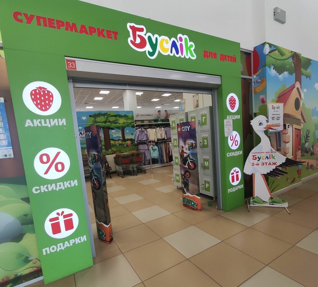 Вывеску магазина видно сразу при подъезде к ТЦ. Большая парковка, всегда есть место для авто. Сам магазин находится на 2 этаже, довольно большой, разделён на различные отделы. Для малышей, игрушки, канцелярия, питание всё отдельно, что очень сокращает время поиска. Отличный ассортимент, качественный товар, очень приятный персонал.