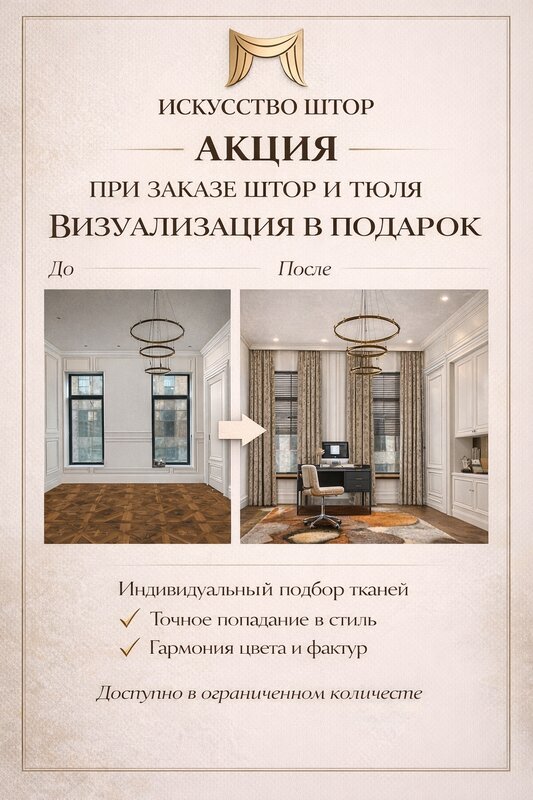 Заказывали римскую штору "День-Ночь" — остались очень довольны! Изделие выглядит стильно и современно, отлично вписалось в интерьер. Механизм работает плавно, удобно регулировать световой поток: днём можно создать мягкое рассеянное освещение, а вечером полностью затемнить помещение. Качество ткани и пошива на высоте — всё ровно, аккуратно, без лишних ниток. Установка не вызвала сложностей, всё продумано. Отдельно хочется отметить консультацию — помогли выбрать подходящий оттенок и размер. Результатом довольны, будем заказывать ещё на другие окна. Рекомендуем!