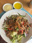 It's a great place. Sooo delicious salads, hot. The portions are huge. The feed is as shown in the picture. The waiters are positive, willing to help. Delicious pita and butter, a gift from the chef. I liked it very much. In the photo, the breakfast is not all included in the photo))