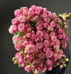 Монобукет из 25 нежных кустовых роз с ароматным эвкалиптом. В подарок к букету приложим средство для продления жизни срезанных цветов, подпишем открытку, доставим букет в аквапаке и транспортировочной коробке