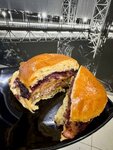 Заказывала через Яндекс еду доставку двух бургеров: с черносмородиновым вареньем и арахисовой пастой(тут допом сыр кажется моцарелла ещё был выбран),острый с сулугуни. Бургеры были заказаны для дальнейшей транспортировки самолетом.Итог-хранение и транспортировку пережили замечательно!Вкус бомба!В заведении имеются не стандартные вкусовые сочетания в бургерах,что лично для меня,является однозначно плюсом ибо если и вкушать что-то скажем так,не самое полезное,то это однозначно должно быть вкусно и интересно и тут это именно так.