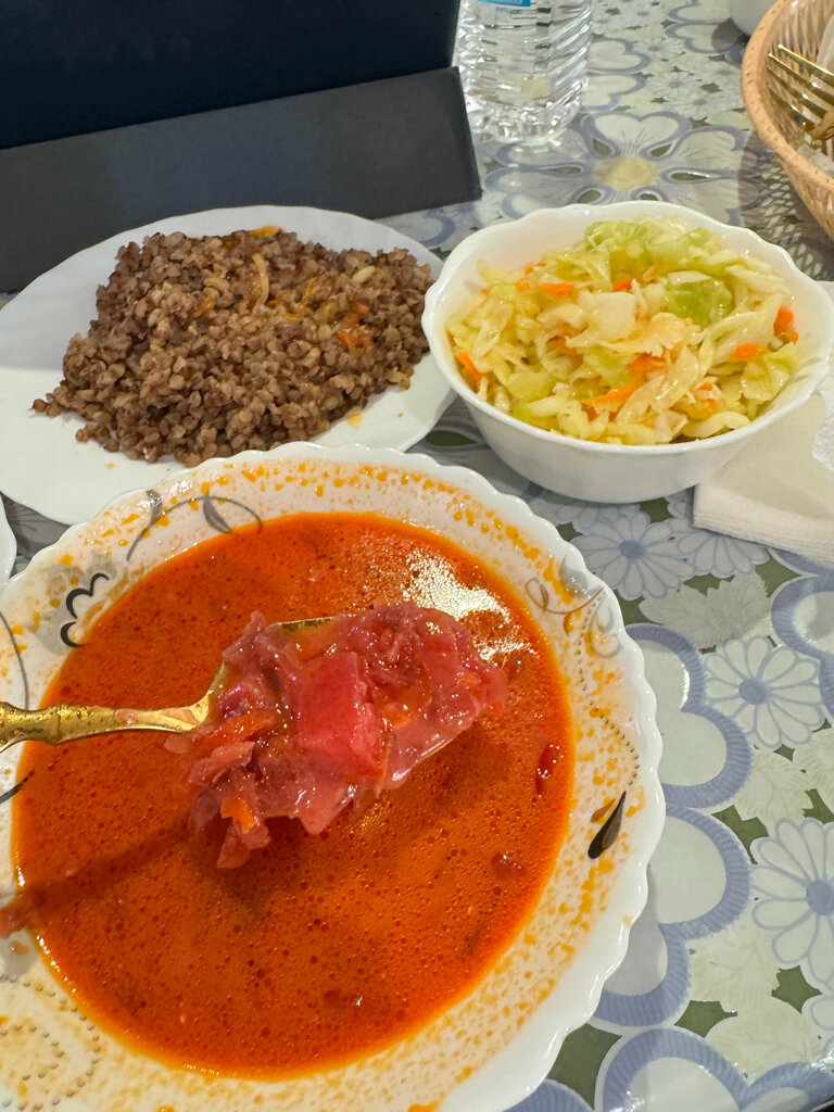 Шашлык от Олега вкуснейший! Порции огромные! Взяли борщ и шашлык с салатиком , лепешку и чай (всего по 2 порции) Цены выходят дешевле, чем на заправках какой-нибудь грильдог с кофе.