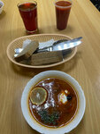 Борщ не понравился, привкус кисловатый, цезарь вполне хороший, но сыра сверху навалили слишком много.