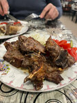 Фантастическая люля кебаб из баранины, очень вкусный плов по-самаркандски (с жёлтой моровью) и конечно же неповторимый вкусный жиз из баранины