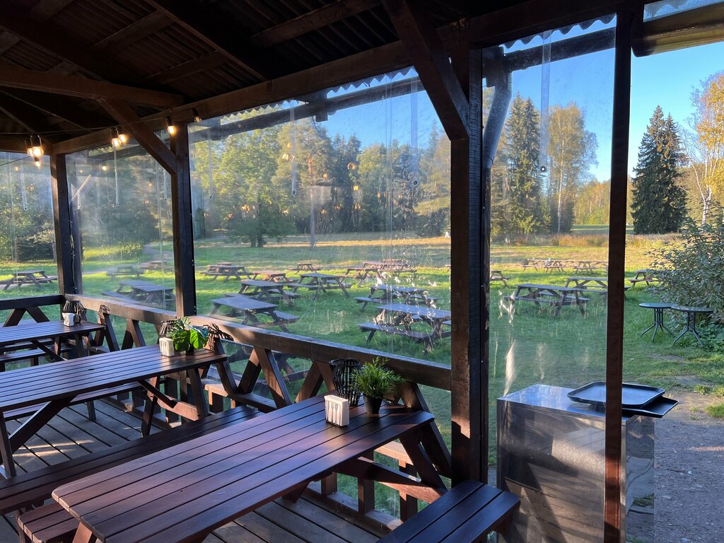 ПЛЮСЫ и МИНУСЫ Кафе. ПЛЮСЫ: ------------ + Местоположение. Расположено на Нижнем розовопавильонном пруду рядом с Лодочной станцией. Если вы хотите покататься на лодке в парке выбирайте именно эту лодочную станцию. Розовопавильонные пруды намного больше Вокзального пруда на котором тоже есть лодочная станция. А пейзажи которые вы увидите с лодки на Розовопавильонных прудах гораздо масштабнее и разнообразнее. + Меньше народа, чем в кафе "Славянка" (хотя это одна и та же организация). + Нет громкой навязчивой музыки. + В будние дни на веранде обычно есть свободные места. + Вкусный, сочный шашлык. Большая порция. Рекомендую. + Шашлык готовят НА УГЛЯХ в вашем присутствии. + Хороший алкогольный глинтвейн. Рекомендую. + Антисептик для рук. + Летом кафе работает ежедневно. МИНУСЫ: -------------- - Столики и скамейки - на воздухе. На веранде и на улице. В холодную погоду - дискомфортно. Особенно при сильном ветре и дожде. - Туалет на улице. - Туалет грязный. - Рукомойник на улице. - Одноразовые тарелки, одноразовые ложки, вилки, ножи. - Цены завышены. - Нет эл. розеток для зарядки телефонов. - Нет Powerbank. - Весной и осенью кафе работает по выходным и праздничным дням. - Зимой кафе не работает. - Столики и скамейки на улице установлены на траве. Многим это нравится. Но это очень плохая идея. В Павловском парке обитают энцефалитные и боррелиозные клещи (противоклещевая или акарицидная обработка от клещей не производится). От клещевого энцефалита есть вакцина. И если вы будете периодически делать прививки клещевой энцефалит вам не страшен. А вот от боррелиоза (болезни Лайма) вакцины нет. И укус боррелиозного клеща может закончиться инвалидностью и смертью. Поскольку клещи живут в траве и листве, необходимо избегать нахождения в местах, где придется тесно контактировать с растительностью. 2023 год в Ленобласти оказался рекордным по присасываниям клещей – было зафиксировано более 9000 случаев, при среднем многолетнем показателе около 6000 случаев.
