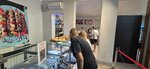 Для быстрого перекуса самое то. Ассортимент большой. Есть прохладные безалкогольные и алкогольные напитки. Много столиков. Есть стульчик для самых маленьких