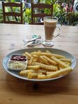 Delicious food, Thai menu adapted for Europeans, not such spicy food, there are complex breakfasts (bacon, eggs, sausages, coffee and juice), the food is not small)))the girl who runs the cafe is friendly, the staff is good-natured. Live music is played in the evenings.