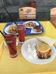 На отдыхе готовить было лень и для питания был выбран вот это заведение. Прайс не дорогой. Меню обширное и меняется в зависимости от дня недели. Многие блюда на вкус как в дорогих ресторанах на первой линии моря. Мест много если внутри тесно есть летние столики.