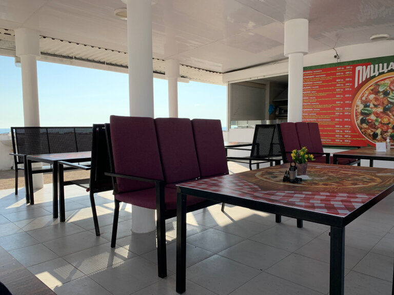 Кафе бар с видом на море. Можно в тени и прохладе перекусить, выпить кофе. В меню есть прохладительные напитки, пиво, мороженое. Персонал внимательный, приветливый. Можно купить, если очень хочется. Кстати кофе здесь самый вкусный! И всего 100 рублей