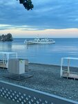 Вид на море красивый , кухня в целом отвратительно, повар не умеют готовить. Были большой компанией, много чего заказывали. Нам на троих счёт вышел на 10000, особо не наелись. По блюдам: барабулька жареная была вкусная, некрупная, хотя трудно испортить ее во время приготовления. Салат греческий это какие то мелко порезанные отвратительные резиновые овощи с листиком салата, и самым дешевым сыром три кусочка, повару или хозяину этого заведения советую сходить разочек в нормальный рестик попробовать нормальный салат и вообще поесть нормально для общего развития, раз уж они занимаются общепитом. Подавать такое это крайнее неуважение к себе и гостям. Мидии порция была штук 20, соус вкусный, но 2 мидии были испорченные, и 7 пустых. В соусе плавали 2 из 7. Соответственно 5 положили просто ракушки без мидий. Паста внешний вид был отвратительный, сверху 3 вялых листика зачем то положили, такие листики лучше вообще не класть, разьве что в помойку, но на вкус ничего. Форшмак неплохой но пальчики не оближешь, хлеб к нему из пятерочки наверное такой дешевенький, горелочкой хоть прошлись бы или подпекли, два кусочка маленьких. В целом впечатление отвратительное после посещения такого «ресторана». Как будто нас обманули. И это действительно так, готовить не умеют абсолютно. Вечер был значительно испорчен такой едой, вспоминать без слез такую забегаловку не получится.