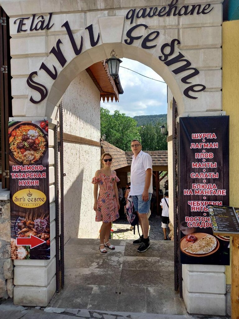Зашли перекусить просто гуляя по городу. Понравилось, что можно посидеть на тапчанах. Заказали классику, чебуреки и шашлык. Чебуреки оказались очень посредственные, что вызвало недоумение.. оказалось, что даже в центре крымско-татарской кулинарии, можно испортить простое блюдо. Жаль! Из плюсов -- можно любоваться видами стен и крыш Ханского дворца сидя прямо над руслом реки.