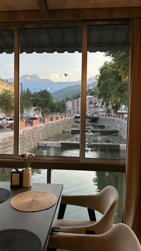 The best cafe in Kapan. The cinema is good, the music is good, the view of the river and Mount Khustup. I ordered caesar, pasta, citrus lemonade, americano and tiramisu. Everything is very tasty!