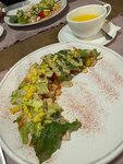 Были в этом кафе на юбилее. У нас был отдельный зал. Где-то ещё в одном зале была свадьба, но мы их даже не слышали. Интерьер очень приятный. Еда обычная, чего-то особенного выделить я не могу. Брала салат с утиной грудкой и ризотто с морепродуктами. Ну, никак не ожидала рисовую кашу с кальмарами. ))) Нет, дорогие мои, так готовить нельзя.